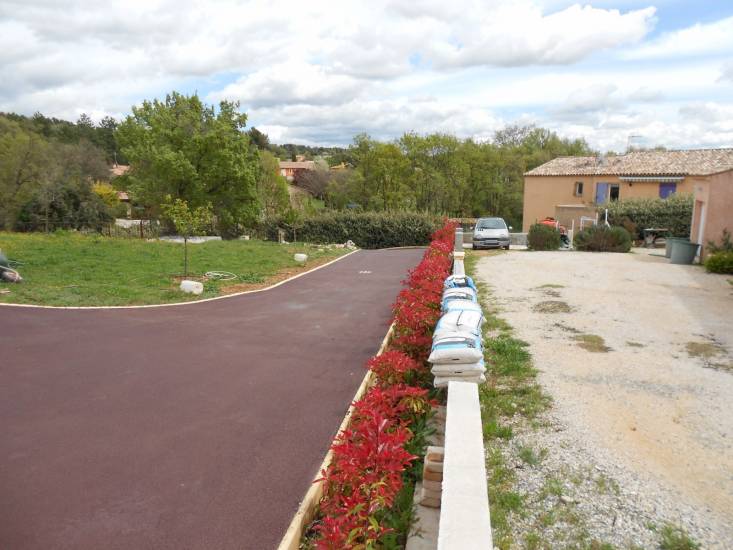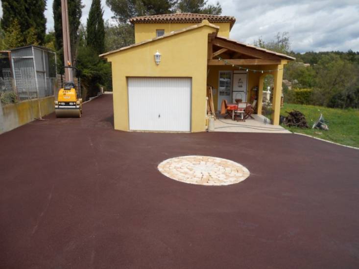 Enrobé Paca a réalisé l'aménagement extérieur d'une propriété située près d'Aix-en-Provence, comprenant la création d'une piscine et d'un terrain de boules. Les travaux ont inclus la pose d'enrobé noir et rouge, ainsi que la création d'un dessin personnalisé en pavé pour ajouter une touche esthétique à l'ensemble.