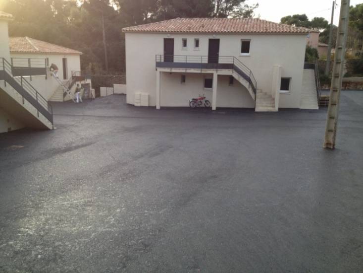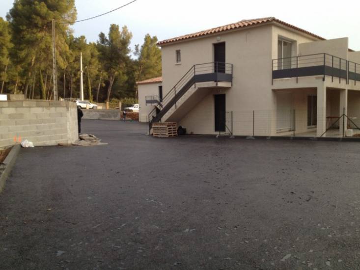 Pour ce projet d'aménagement extérieur à La Ciotat, dans les Bouches-du-Rhône, Enrobé Paca a pris en charge l'ensemble des travaux de VRD, comprenant l'implantation, la pose de bordures, le terrassement, l'installation des réseaux secs et humides, la préparation du sol, l'application de l'enrobé et le traçage au sol.