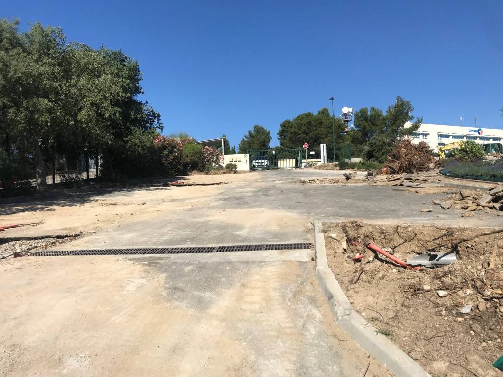 Les travaux ont continué par la mise en place de fourreaux pour le câblage du nouvel éclairage, ainsi que le coulage des plots bétons destinés à la pose des futurs éclairages, installés et câblés par un électricien. L’imprégnation de la voie et du stationnement, sur une superficie de 1 400 m², a été suivie par l’application d’un enrobé noir 0/10 et d’un enrobé rouge 0/6 sur les trottoirs (120 m²). Enfin, un traçage complet du parking a été réalisé pour une finition soignée.
