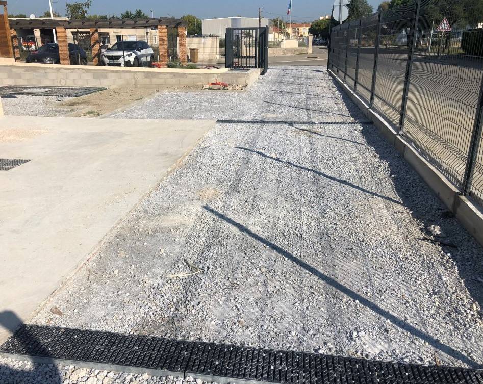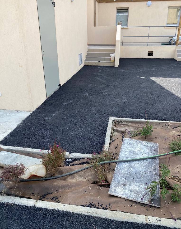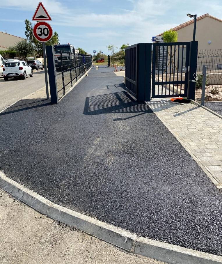 Nous avons récemment réalisé un chantier à la Gendarmerie des Salins de Giraud, dans les Bouches-du-Rhône. Ce projet a porté sur l’aménagement de 480 m² de jardins, la réfection de la voirie et du parking avec un enrobé noir 0/10 appliqué sur 6 cm d’épaisseur.