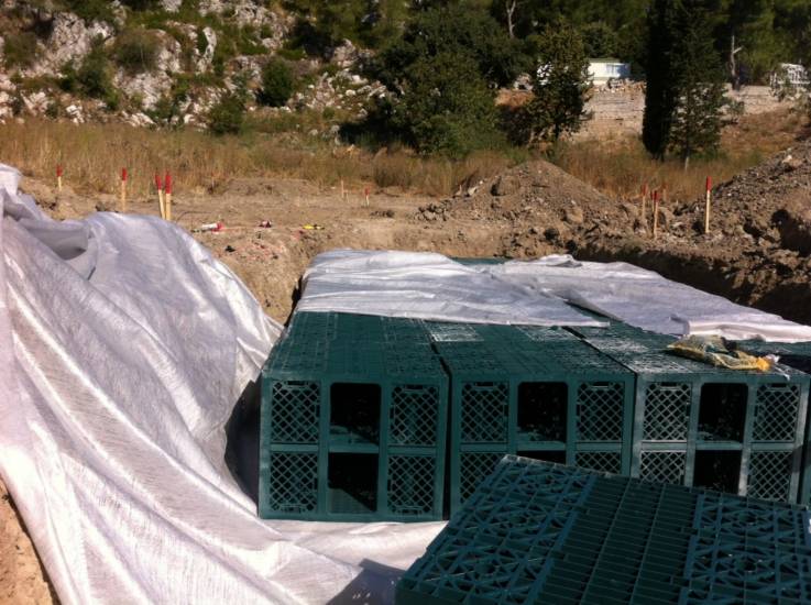 Enrobé Paca, entreprise de travaux publics située à Meyreuil, près d'Aix-en-Provence, a récemment réalisé l'installation d'un bassin de rétention enterré "Frankicshe", modèle Rigofill Inspect, pour un nouveau lotissement. Cette solution innovante permet de créer des réservoirs souterrains pour le stockage des eaux pluviales, offrant des coûts d'investissement nettement plus bas et des avantages de maintenance supérieurs par rapport aux autres systèmes de stockage traditionnels.