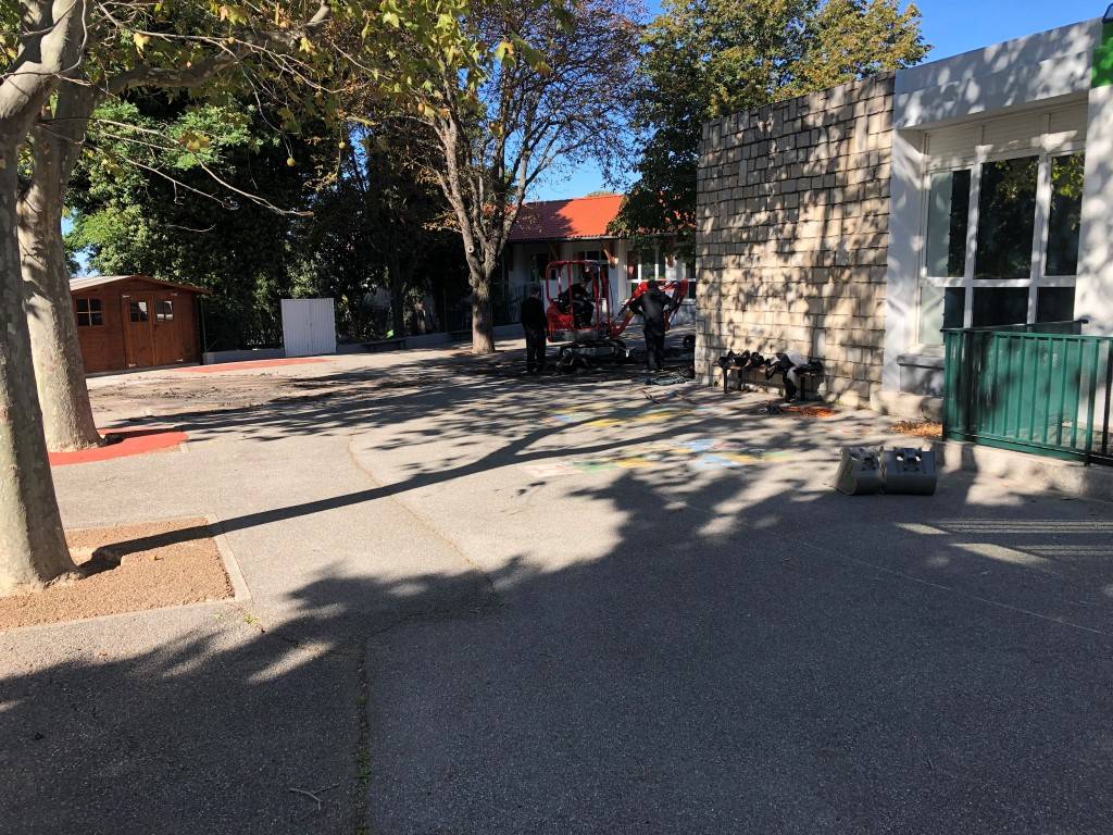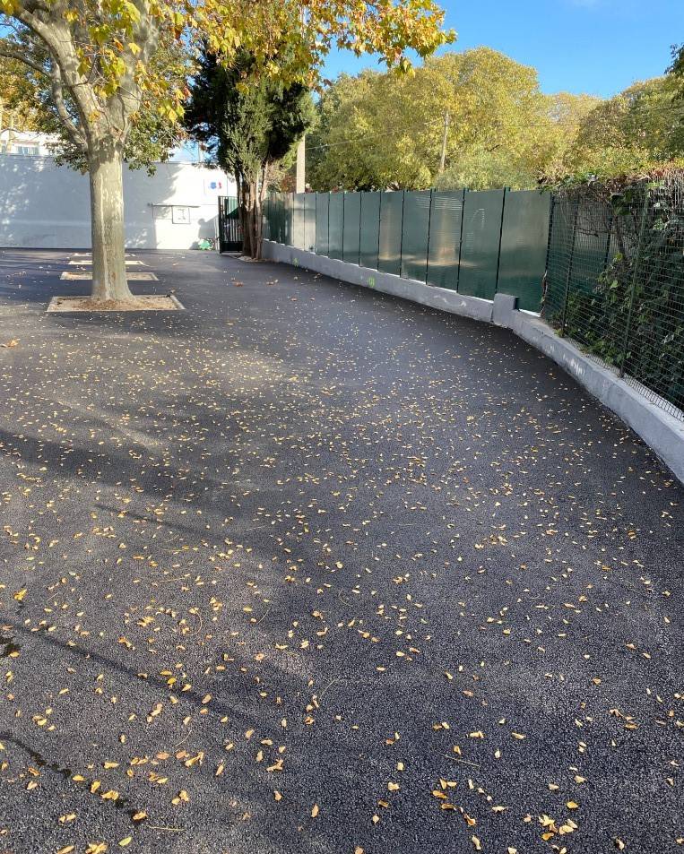 Spécialiste des aménagements extérieurs, Enrobé Paca conçoit des terrains de sport, espaces multisports et cours de récréation pour les communes et écoles de Marseille et ses environs. Nous prenons en charge la préparation du sol, l’application du revêtement bitumineux et le traçage au sol. Récemment, nous avons réalisé une cour de récréation de 600 m² pour une école primaire à Marseille, en enrobé noir 0/6 sur 4 cm d’épaisseur. La préparation du sol a été assurée par un prestataire extérieur, tandis que nos équipes ont exécuté les travaux de finition avec soin.