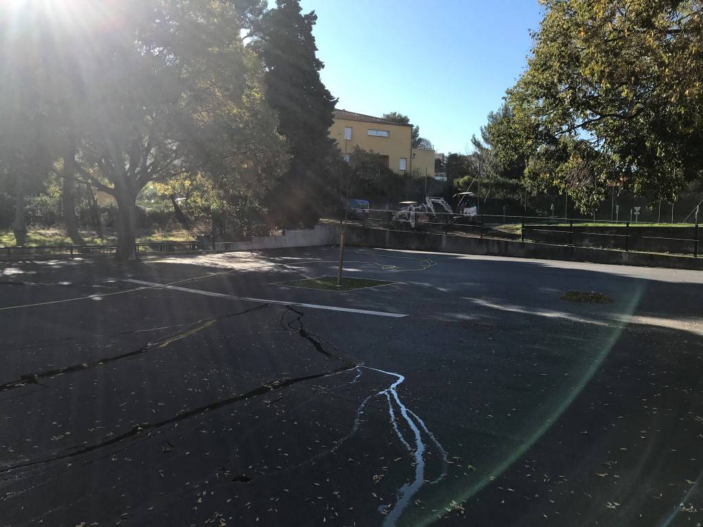 Enrobé Paca conçoit et réalise des terrains de sport, espaces multisports et cours de récréation pour communes et écoles, à Marseille et ses environs. Récemment, nous avons réalisé une cour de récréation de 2500 m² pour une école primaire à Marseille, avec un enrobé noir 0/6 sur 4 cm d’épaisseur. La préparation du sol a été effectuée par une société extérieure, tandis que nos équipes ont assuré l’application du revêtement bitumineux et le traçage au sol.