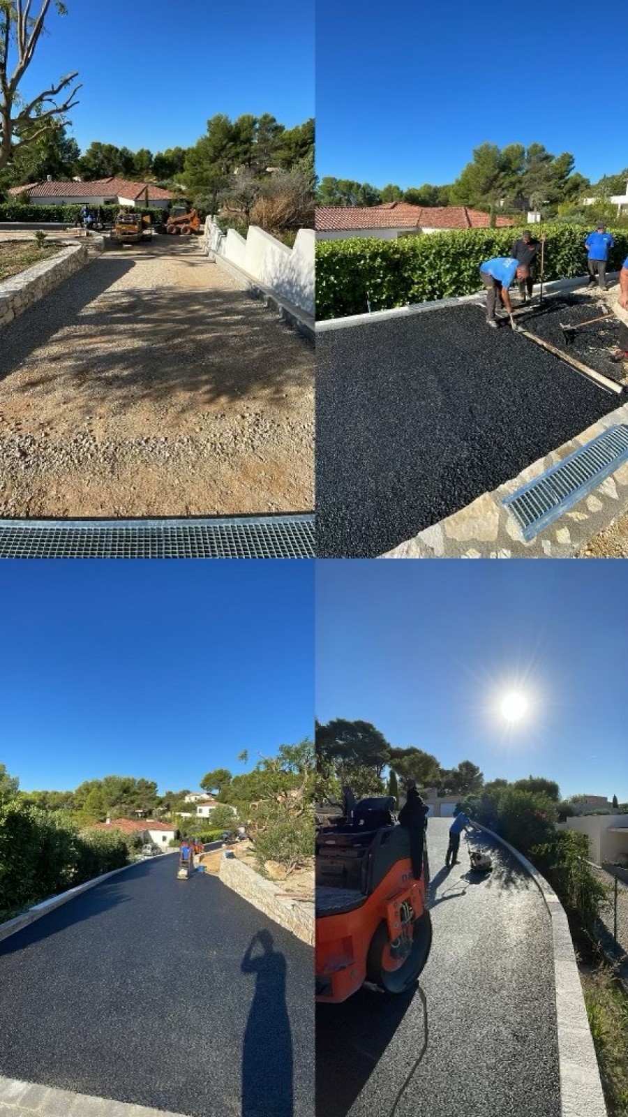 Enrobé Paca a réalisé l'accès d'une villa sur la commune de Ventabren, incluant le terrassement du support et la mise en œuvre de grave naturelle compactée en couches de 20 cm. Ensuite, un enrobé noir à chaud a été appliqué sur une épaisseur de 5 cm pour garantir une surface robuste et esthétique. Les finitions ont été soigneusement réalisées, notamment au niveau des murs en pierre et des caniveaux, assurant ainsi un résultat impeccable et durable.