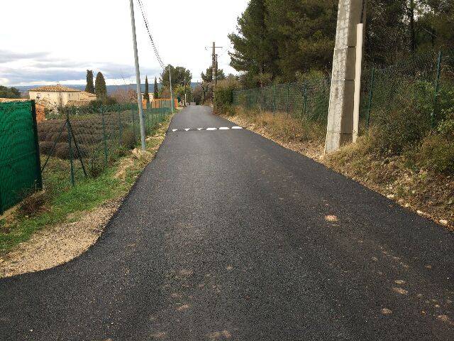 Nous avons réalisé sur ce chemin privé d'Aix en Provence de plusieurs copropriétaires un rabotage partiel de la voie avec un terrassement sur les endroits difficiles d'accès. Nous avons élargie la voie sur certaines sections, et nous avons réalisé l'ensemble des ralentisseurs en enrobé a chaud.