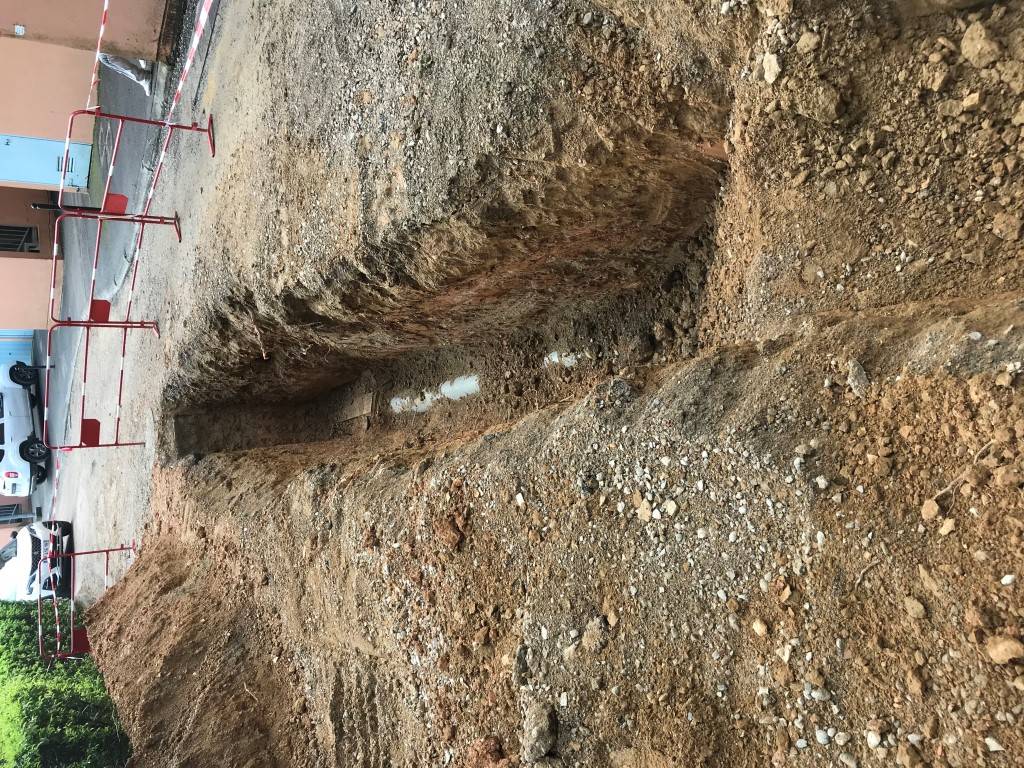 Les travaux ont débuté par le remplacement d'un réseau d’eaux usées défectueux sur une longueur de 40 mètres, en PVC diamètre 250, que nous avons raccordé à un regard existant. Après cette intervention, nous avons rebouché les tranchées et préparé le support en appliquant une grave naturelle 0/20 compactée.