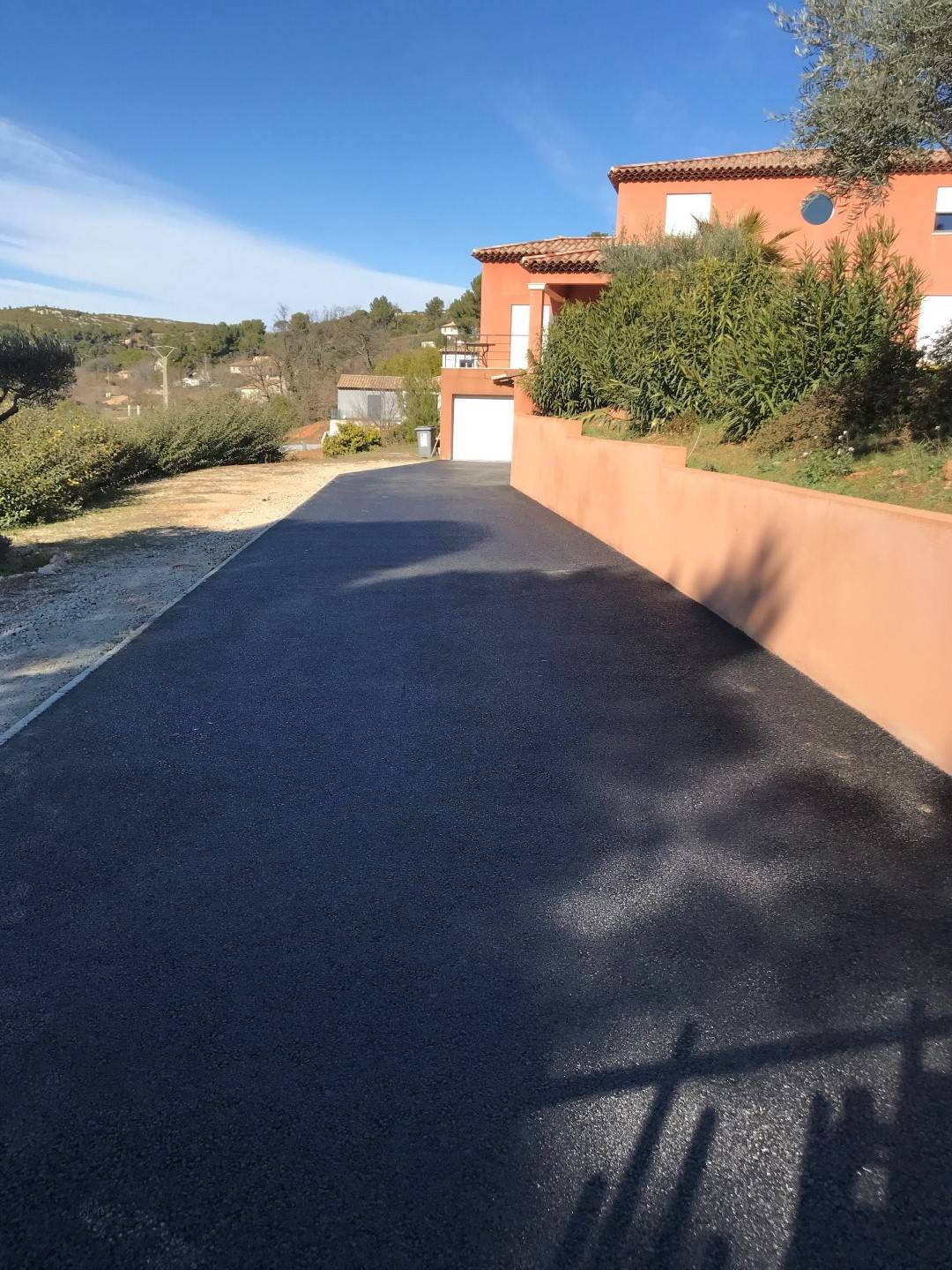 Enrobé Paca a effectué la réfection de l'entrée de villa pour voiture à Meyreuil, dans les Bouches-du-Rhône, avec l'expertise d'une équipe de professionnels. Le chantier a commencé par le terrassement de l'existant, suivi de la pose de bordures pour délimiter précisément la zone et assurer une finition soignée. Nous avons ensuite procédé à un reprofilage avec de la grave naturelle compactée. Enfin, un enrobé à chaud noir 0/10 a été appliqué sur une épaisseur de 5 cm, parfaitement compactée, pour garantir une finition durable et de qualité.