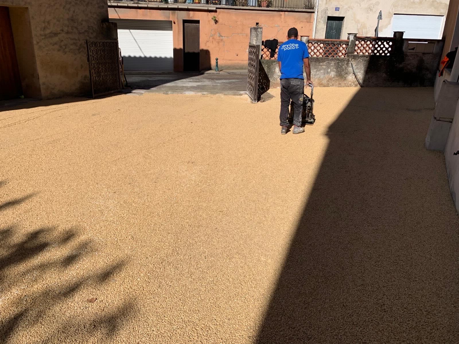 Enrobe Paca a récemment réalisé la réfection complète d’une cour à Rousset en utilisant un gravier coloré drainant, alliant esthétisme et performance écologique.