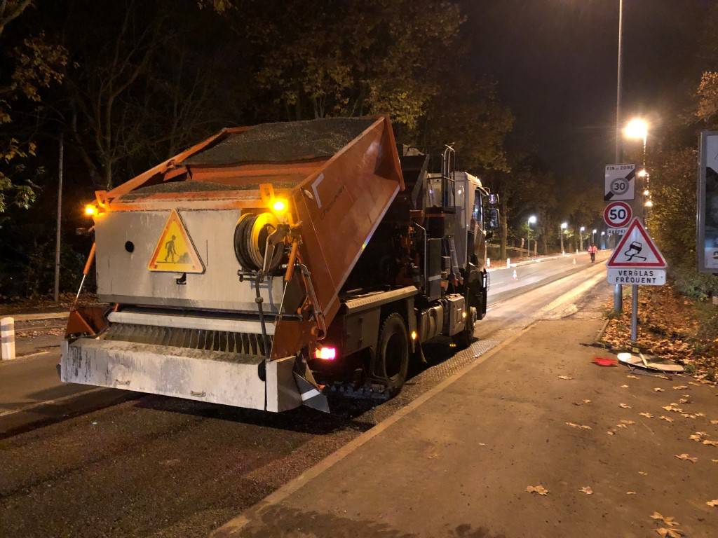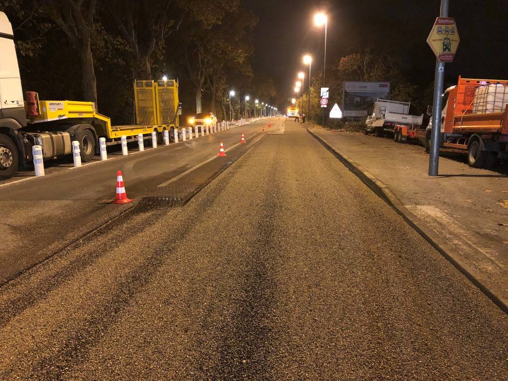 À Aix-en-Provence, nous avons mené des travaux de réfection de la chaussée en intervenant de nuit afin de garantir une préparation optimale de la voirie tout en préservant la fluidité de la circulation en journée. Ce chantier a inclus le rabotage de la route, suivi d'une imprégnation soigneuse pour assurer la durabilité des travaux.
